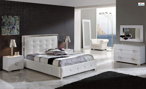 Contemporary Spain Made Luxurious Bedroom Set In White Leather